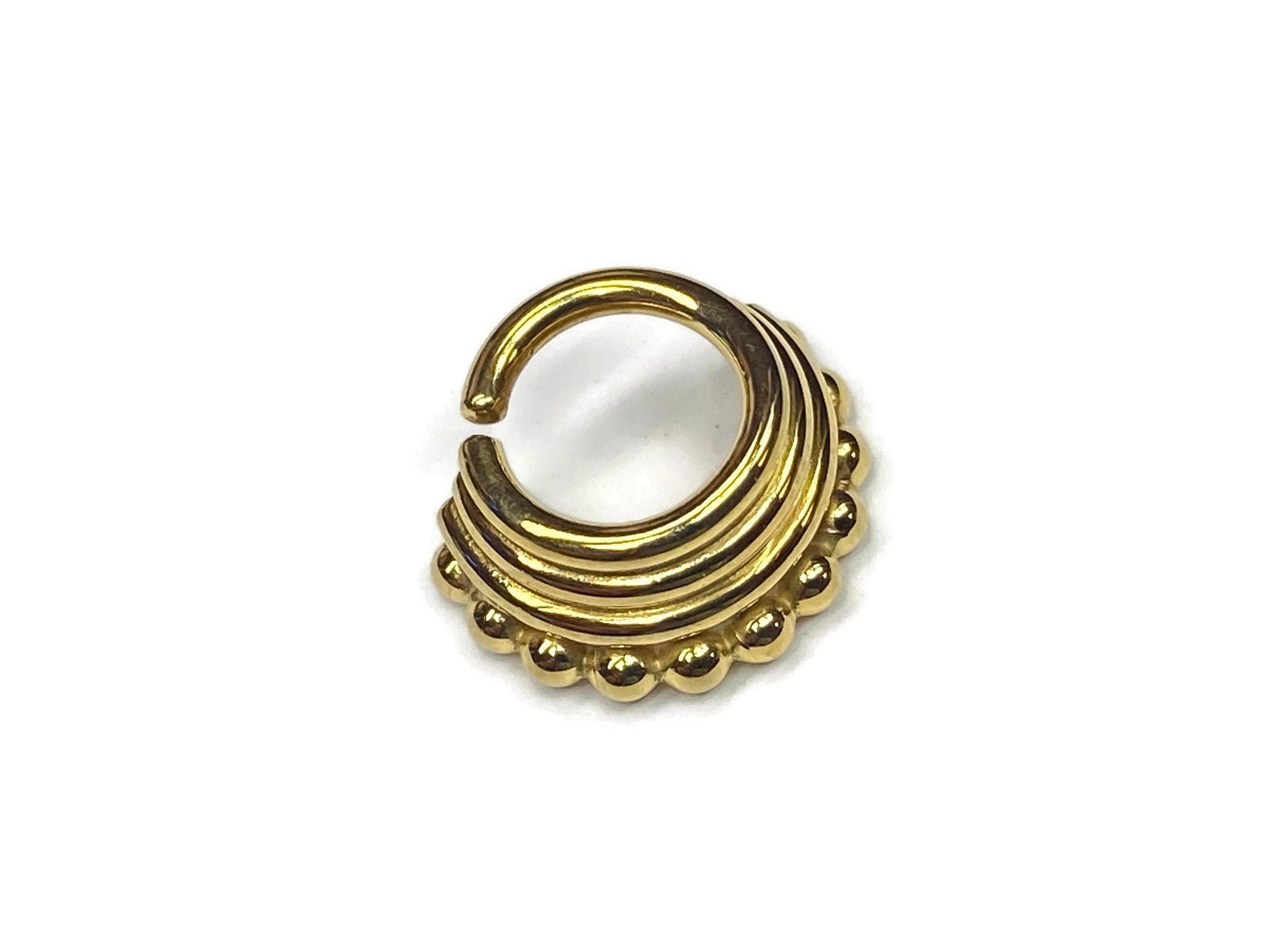 14K Yellow Gold Quadruple Layered Septum Ring ~ Solid Gold Nose Hoop ~ Quad Stacked and Beaded Nose Ring ~ Tribal Style